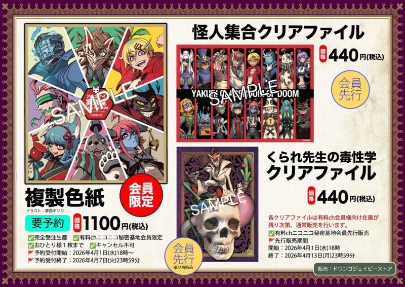 阿佐ヶ谷イベントで販売された「複製色紙」、そして新作の「怪人集合クリアファイル」、お見逃し無く!