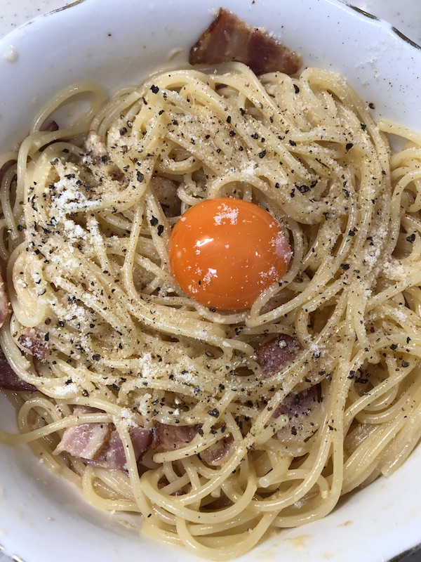 私のカルボナーラのレシピは、生クリームや牛乳を使わないタイプのものになります。