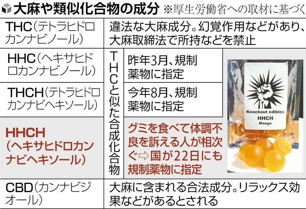 2023年11月21日現在の時点で規制の対象外となっていた大麻類似成分「HHCH(ヘキサヒドロカンナビヘキソール)」が含有されたグミを販売、体調不良者が続出している問題がありました。