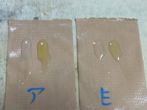 混合する前は、見た目も臭いも、どちらも同じようなものです。おそらくは成分が近いためだと思います。