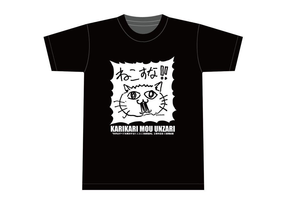 2周年を記念した、有料会員限定のグッズとして、くられ先生の落書きをベースにしたTシャツが販売されます。3月1日(土)12時よりドワンゴジェイピーストアにて発売です!